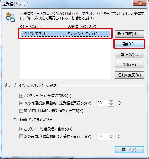 2.ウィンドウが開くので、「すべてのアカウント」が選択された状態で「編集」ボタンをクリックします。