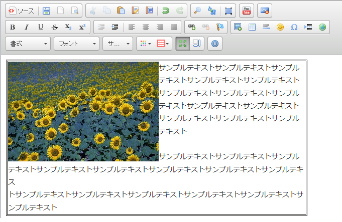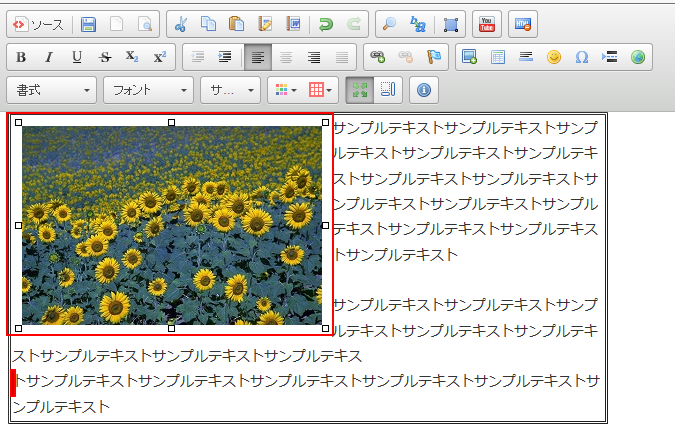 画像を選択して単純に表示させると、上のように画像とテキストの最初の行が同じ行扱いとなり、いびつなレイアウトとなります。