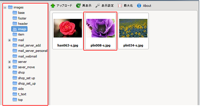 画像がサーバーにアップロードされ、リストに表示されますのでファイルをダブルクリックして選択します。