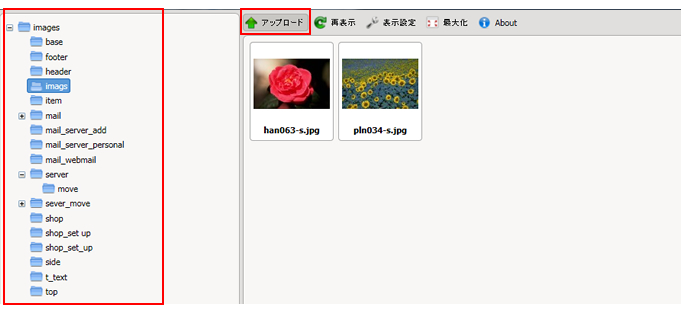 選択した画像がサーバーブラウザウィンドウにアップロードされます。