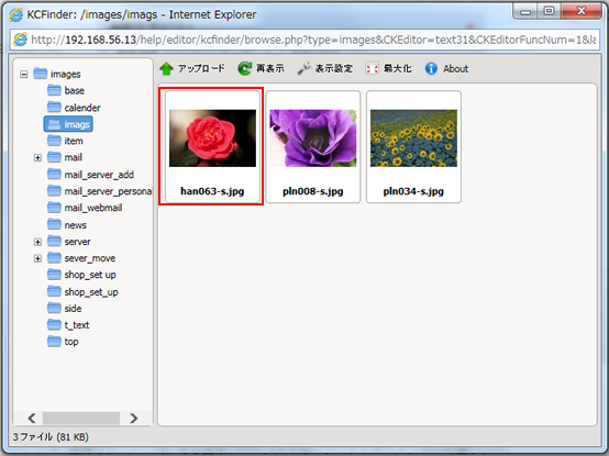 サーバーブラウザが開きますので、画像登録と同様に必要なファイルを保存して、リストから該当ファイルを選択します。