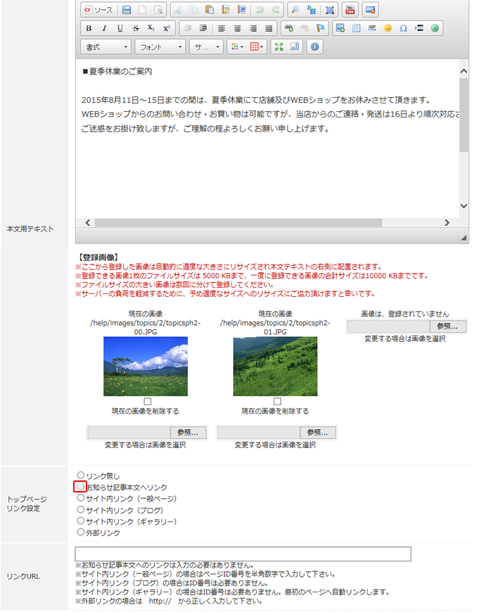 - リンクの設定