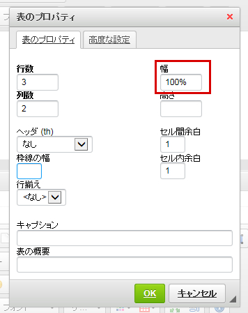画像と同様にテーブルを配置する場合も横幅の指定は%で指定します。